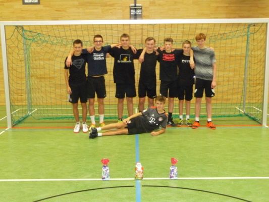 Das 13. Traditionelle Nikolaus Turnier endet mit einer faustdicken Überraschung! Turniersieger wurde in der langen Geschichte des Turniers zum ersten Mal eine Mannschaft der 10. Klasse. Herzlichen Glückwunsch an Ständer Lüttich. Und noch ein Novum: Erstmals spielten zwei Teams aus Kusterdingen mit. Der 1.FC Krause und „Mein persönlicher Favorit" schlugen sich achtbar und sind nächstes Jahr sicherlich wieder dabei. Das Turnier war dieses Jahr insgesamt stärker besetzt als vergangenes Jahr. Viele talentierte Kicker sorgten schon in der Vorrunde für erstklassige Spiele mit vielen Toren, feinen technischen Kabinettstückchen und vor allem mit viel Bock auf Fußball. In Gruppe 1 konnte sich der 1. FC Krause klar durchsetzen und gewann verdient alle Spiele. Auch der spätere Titelträger Ständer Lüttich hatte hier zweimal das Nachsehen, konnte sich aber als Gruppenzweiter dennoch für das Halbfinale qualifizieren. Deutlich enger ging es dagegen in Gruppe 2 zu. Nach spannenden Spielen und großem Kampf konnte sich die Mannschaft „Hürdensitz", ebenfalls ungeschlagen, vor dem Dream Team platzieren. Das Dream Team der Lehrer war trotz einiger Ausfälle wieder einmal nur schwer zu schlagen. Die beiden Routiniers König und Wagner ließen zwar Spritzigkeit vermissen, sorgten aber für defensive Stabilität und einen sicheren Spielaufbau; Schlecht als Mittelfeldmotor und die beiden Nachwuchstalente Micha und Laura im Sturm, vollendeten die gefühlvoll nach vorne gezauberten Bälle. Spielzüge wie auf dem Reißbrett, mit zum Teil raffiniert herausgespielten Toren, konnten die Zuschauer reihenweise genießen. Hinten im Tor hielt Krause alles was zu halten war und gab der Mannschaft dadurch weitere Stabilität. Beide Halbfinalspiele waren hart umkämpft und es sollten am Ende Kleinigkeiten den Ausschlag über Sieg oder Niederlage geben. Im 1. Halbfinale setzte das Dream Team dem Siegeszug des 1.FC Krause ein Ende. Nach 4 gewonnen Spielen in der Vorrunde musste sich der 1. FC Krause zum denkbar schlechtesten Zeitpunkt mit 1 : 2 geschlagen geben. Das 2. Halbfinale war gefühlt noch knapper und endete mit demselben Ergebnis. Auch hier verlor die über weite Strecken des Spiel dominierende Mannschaft Hürdensitz mit 1 : 2 gegen Ständer Lüttich. Kurioserweise konnten sich beide zweitplatzierten Teams der Vorrunde in den Halbfinals durchsetzen. So kam es im Finale, wie schon so oft, zum beliebten Duell Lehrer gegen Schüler. Das Lehrerteam musste offensichtlich dem hohen Tempo im Halbfinale Tribut zollen und verschlief die Anfangsphase komplett. Schnell lag man scheinbar aussichtslos mit 0 : 3 zurück. Dann aber sorgte Micha mit einem Kracher ins kurze Eck für den Auftakt zu einer turbulenten Schlussphase. Und tatsächlich konnte Krause mit einem sensationellen Hackentrick quasi mit dem Schlusspfiff ausgleichen. Im folgenden 9-Meter-Schießen waren vor allem die Torleute Paul Klett und Wagner auf der Höhe des Geschehens. Wagner hielt einen Neunmeter und war an einem weiteren dran. Klett aber wuchs förmlich über sich hinaus und war fast nicht zu bezwingen. Mit seinem zweiten gehaltenen Neunmeter (von dreien) entschied er das Finale für Ständer Lüttich fast im Alleingang. Der Rest war Jubel und grenzenlose Freude. Herzlichen Glückwunsch Ständer Lüttich zum Turniersieg 2019 und vielen Dank an alle Mannschaften für die überaus faire Spielweise. Auf ein neues 2020!