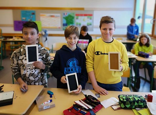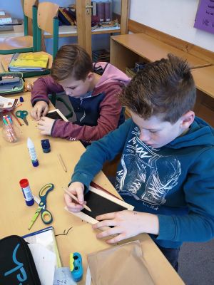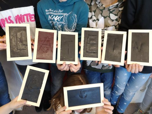 Heute hieß es für die Lateiner der 6. Klassen "Weg mit Stift und Papier und her mit Stilus und Wachstafel". Im Lateinunterricht bastelten sie kleine Wachstäfelchen. Hierzu mussten Holztafeln zusammengeklebt, Bienenwachsplättchen zugeschnitten und die dazugehörigen Holzstifte mit Schmirgelpapier bearbeitet werden. Am Ende der Stunde hatte jeder sein eigens angefertigtes Wachstäfelchen und konnte testen wie die alten Römer früher schrieben. Mit der Vorderseite des Stilus ritzte man die Buchstaben in das Wachs. Fehler konnten mit der Rückseite des Stilus "wegradiert" bzw. weggekratzt werden. Ganz schön viel Arbeit, die aber auch Spaß macht. Deswegen dürfen die Schülerinnen auch ihren nächsten Vokabeltest auf den Tafeln schreiben.