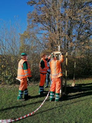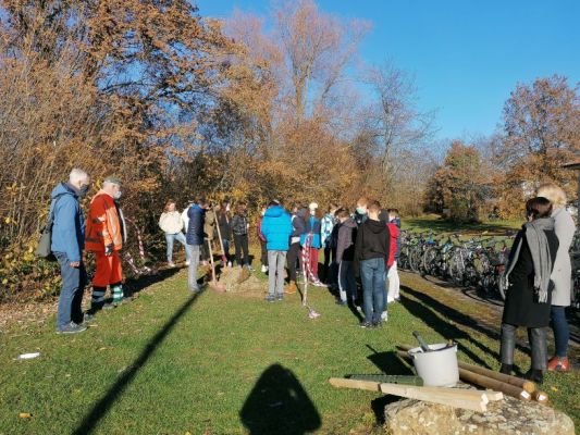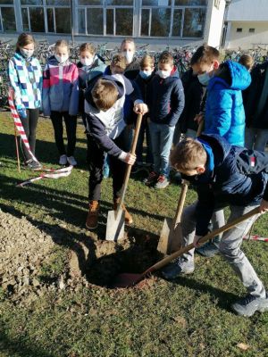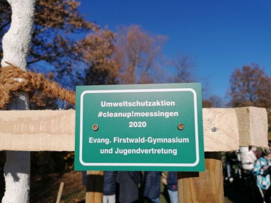 #cleanup!Mössingen. Diese Umweltschutzaktion ist im letzten Jahr entstanden und wurde von der Jugendvertretung der Stadt Mössingen aufgegriffen. Neben der Müllsammelaktion, an der sich über das gesamte Jahr Klassen aller Mössinger Schulen beteiligen, finden weitere Aktionen wie inhaltliche Workshops zu den Themen Natur und Nachhaltigkeit sowie Baumpflanzaktionen statt. In diesem Zusammenhang pflanzte bereits am 18.11.2020 die Klasse 7b symbolisch eine Blasenesche auf unserem Campus. Diese soll in einigen Jahren nicht nur als Schattenspender in den Pausen dienen, sondern in ihrer Blütezeit von Juli bis August auch ein Magnet für Bienen werden. Für die Pflege und Bewässerung über die Sommermonate sind unsere Schülerinnen und Schüler zuständig.