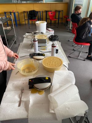 Herr Hauber, unser Küchenchef, unterstützte mit viel Know-How zum Waffelteig.