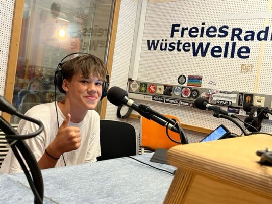 Am Donnerstag, den 14. Juli 2022, waren wir, die MuM-Schüler und Schülerinnen der Klasse 7b, beim Radiosender Wüste Welle in Tübingen. Dort wollten wir unsere Radiosendung endlich senden. Wir hatten uns Wochen davor für das Thema Scripted Reality entschieden und dann mehrere Teams zur Produktion von Beiträgen gebildet. In der Vorbereitung haben wir uns erstmal mit dem Thema und den verschiedenen journalistischen Beitragsformen beschäftigt. Danach hatten wir dann die Aufgabe, unsere eigenen Beiträge zu erstellen. Wir haben unser ausgewähltes Thema nochmal in verschiedene Unterthemen unterteilt. Aufgeteilt in mehrere Produktionsteams sowie einem Team zur Redaktionsleitung haben wir dann die Sendung erstellt. Wir mussten uns an einen Projektplan halten und darauf achten, dass alle Beiträge rechtzeitig fertig wurden. Und wir haben uns dann auch um die Musik gekümmert. Es war eine tolle Erfahrung für uns alle! Wir bedanken uns bei unserem Lehrer Herrn Behr sowie Frau Bauer von der Wüsten Welle, die uns durch die ganze Sendung begleitet haben. Wir hatten alle großen Spaß und haben viel gelernt.