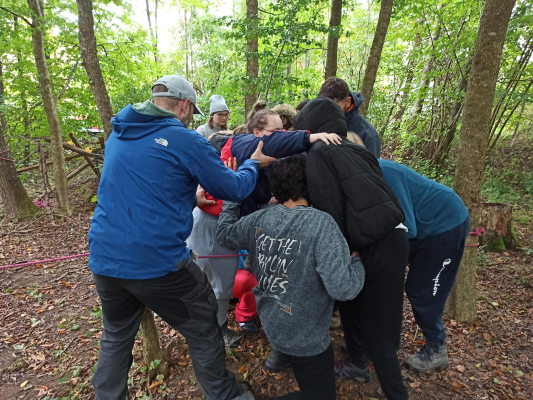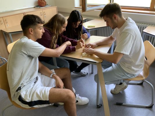 Vom 23. bis 25. September fand unser traditionelles Kennenlernwochenende im Internat statt. Nach dem gemeinsamen Start bei Kaffee und Kuchen wurde gemeinsam das Internatsjahr geplant und organisiert. Bei der anschließenden Marshmallow Challenge war neben Teamarbeit vor allem Kreativität und Experimentierfreude gefragt. Den größten Turm aus 20 ungekochten Spaghetti, 1 m Klebeband und 1 m Schnur baute das LehrerInnen-Team mit über 80 cm Höhe. Die Erkenntnisse aus dieser Übung konnten am zweiten Tag direkt im Gelände auf der Schwäbischen Alb umgesetzt werden. Angeleitet von Philipp von den „Albläufern" konnten bei herbstlichem Regenwetter die gewonnenen Erkenntnisse umgesetzt und die Teamfähigkeit bei verschiedenen Übungen, unter anderem im Niederseilparcours in der Nähe der Seitzhütte bei Engstingen, ausprobiert werden. Es war wie immer ein sehr schönes Wochenende.