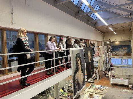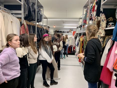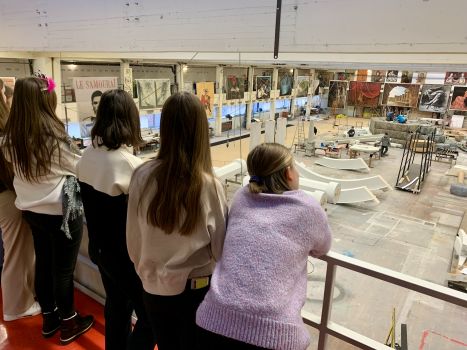 Wie viele Kostüme hängen im Kostümfundus? Wer weiß, wo was hängt? Was macht ein Hutmacher im Theater? Wie viele Schneiderinnen gibt es? Wer knüpft im Theater die Perücken? Wie kommt eine Narbe ins Gesicht? Wie werden die Bühnenbilder hergestellt und wo werden sie gelagert? Von wo betreten die Schauspieler:innen die Bühne? Diese und viele andere Fragen wurden bei der Führung hinter den Kulissen beantwortet. Eine kleine Gruppe der 56 Schüler:innen der Klassen 9a und 9b hat am Nachmittag des 15.12.22 die verschiedenen Abteilungen kennengelernt, die es im Staatstheater Stuttgart gibt – übrigens dem größten Drei-Sparten-Theater Europas (Oper, Ballett, Schauspiel), und dabei festgestellt, dass es neben Schauspielerinnen, Dramaturgen und Regisseurinnen auch ganz viele andere Berufe wie Raumausstatter, Schreiner, Bühnenmaler, Bühnenplastiker und Metallbauer am Theater geben kann. Während also die einen hinter den Kulissen das Theater erkundeten, erforschten die anderen bereits den Stuttgarter Weihnachtsmarkt und besorgten so manches Weihnachtsgeschenk. Schließlich kamen alle wieder pünktlich um 19 Uhr zusammen, um gemeinsam das Stück „Der Besuch der alten Dame" von Friedrich Dürrenmatt mit einem Text von Peter Michalzik zu sehen. Das Drama, welches in deutscher und hebräischer Sprache mit englischen und deutschen Übertiteln gezeigt wurde, beschäftigt sich mit großen Fragen: Wie steht es um unsere Moral im Angesicht des eigenen Profits? Welchen Einfluss hat Geld auf unsere Gesellschaft? Wie gehen wir mit Schuld um? Was ist Gerechtigkeit und welchen Preis hat sie?