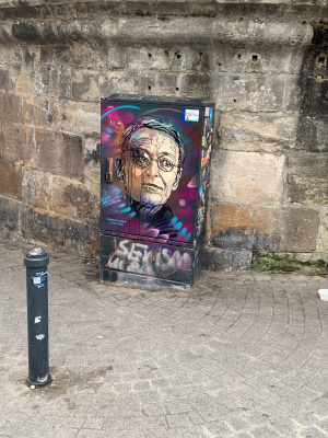 Der Künstler ist mit Tübingen verbunden, weil sein Vater als Besatzungssoldat dort stationiert war. So entstand das Projekt, dass er mit seiner Schablonenkunst-Technik sieben Porträts historischer Tübinger Persönlichkeiten in der Altstadt geschaffen hat. Diese sind auf Stromkästen zu finden, weil er damit erreichen will, dass seine Portraits an dem Ort bleiben, wo er sie gesprayt hat, und dass man sie nicht verkaufen kann.