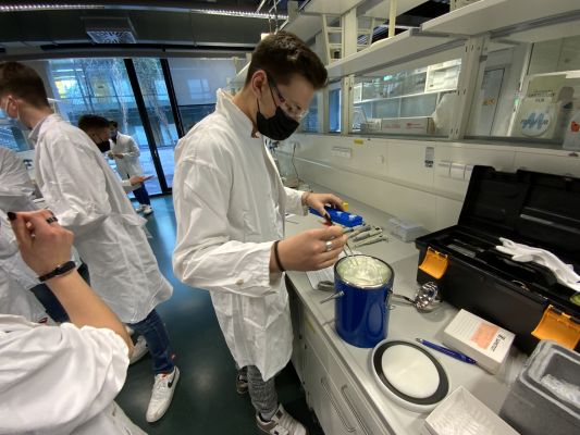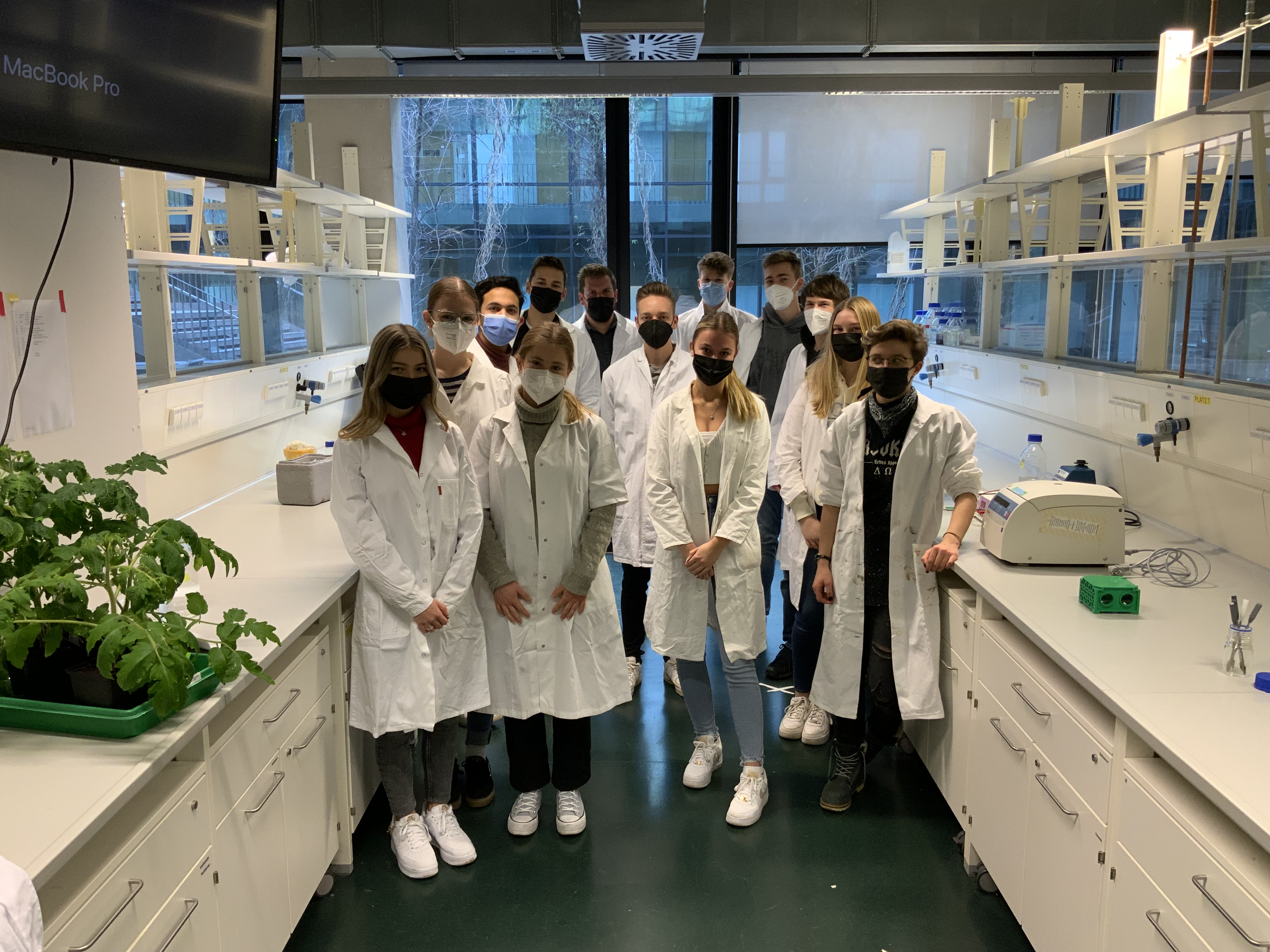 Der Tag begann um 10.00 Uhr mit einer kurzen Einführung mit allgemeinen Informationen über das ZMBP. Anschließend ging es in das Labor. Nach einer Einführung lernten die Schülerinnen und Schüler das richtige Pipettieren verschiedener Flüssigkeiten kennen.