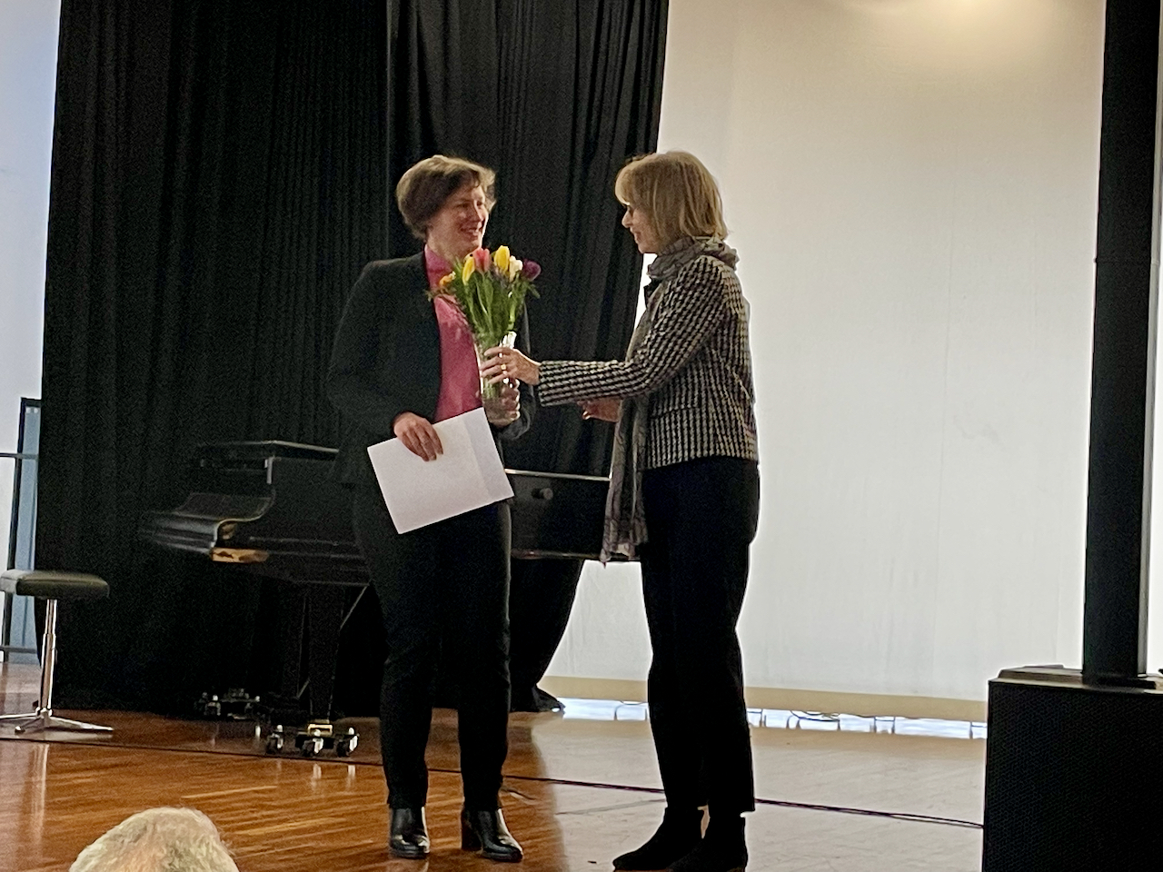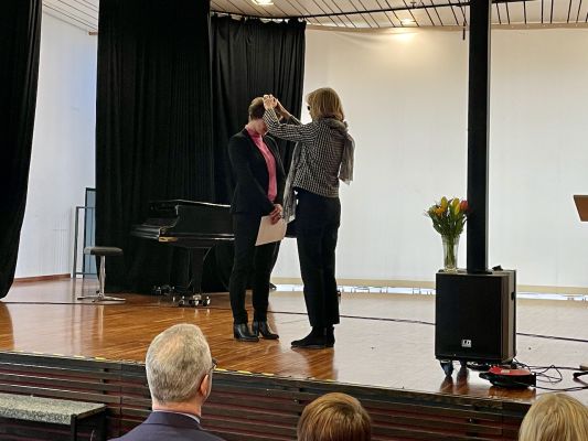 Anlässlich der heutigen Einweihung des Turms wurde Elisabeth Zaia von Ursula Kannenberg, der pädagogischen Geschäftsführerin der Schulstiftung der Ev. Landeskirche in Württemberg und zugleich auch Pfarrerin, gesegnet und in ihr Amt eingeführt. Außerdem überreichte sie ihr die Ernennungsurkunde zur Studiendirektorin. Wir beglückwünschen Elisabeth Zaia zu dieser Aufgabe und wünschen Ihr Durchhaltevermögen, Kraft, Humor und Gottes Segen. Gott spricht: Fürchte dich nicht. Ich bin bei dir. Ich stärke dich. Ich helfe dir auch. (Jes 41,10)
