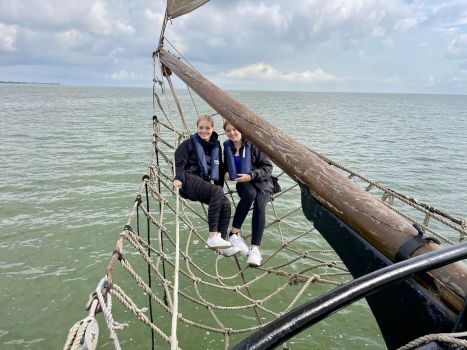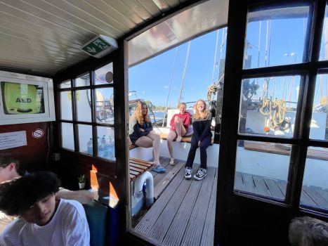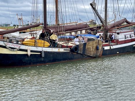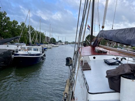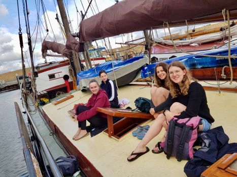 Die Segelfahrt begann für die Klasse 9a im Grunde genommen bereits einen Tag vorher. Denn am Samstagabend (15.07.) erreichte uns die Nachricht, dass unser gebuchtes Schiff, die Johanna Engelina, kurzfristig kaputt gegangen ist. Was nun? Das Segeln abzusagen war keine Option. Wir haben also zwei kleinere Ersatzschiffe, die Phönix und die Anna Trijntje, angenommen. Denn wie sagt der Niederländer: "Een half ei is beter dan een lege dop." ("Ein halbes Ei ist besser als eine leere Schale.") Und so brachten die Busfahrer, Martin und Ahmet der Firma Leibfritz, am Sonntag (16.07.), erst die Klasse 9b zum Hafen in Enkhuizen und uns zum Hafen in Muiden neben Amsterdam im südlichen Ijsselmeer.