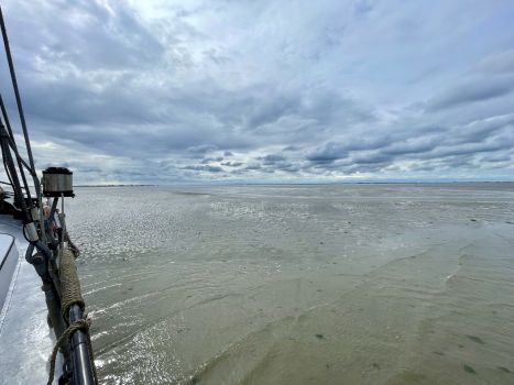 Den Mittwochvormittag (19.07.) verbrachten wir auf Texel, badeten am Strand und erholten uns von der anstrengenden Segeltätigkeit. Um die Mittagszeit ging es auf die Platte im Wattenmeer zum Trockenlegen. Die Schiffe wurden geradezu in die Sandbank gerammt. Das Wasser wich zurück. Während das Wasser sich zurückzog, haben wir unsere Badesachen angezogen und zwischen den beiden Schiffen eine nasse Football-Variante gespielt, die Schiffe waren dabei die Goals. Irgendwann war das Wasser ganz weg. Ebbe. Zeit für einen Wattspaziergang: Krabben, Würmer, zappelnde Fische, Algen, Muscheln und ein bisschen Schlick. Vom Trockenlegen ging es zu vorabendlicher Stunde nach Den Oever. In diesem alten Industriehafen war am Abend sozusagen Flaute. Gemeinsam gegessen, Karten und Monopoly gespielt, gequatscht, in den Wind gelauscht wurde trotzdem.