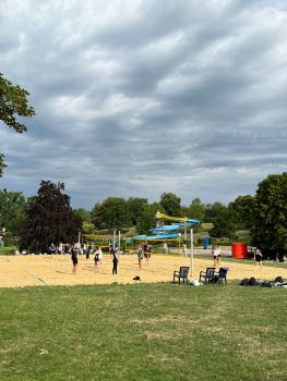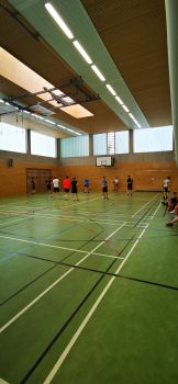 Im Freibad fand für die Zehntklässler und die Kursstufe ein großes Beachvolleyballturnier statt. In 5er Teams wurden sich viele heiße Matches geboten. Leider musste das Turnier aufgrund des Regens nach der Vorrunde vorzeitig beendet werden.