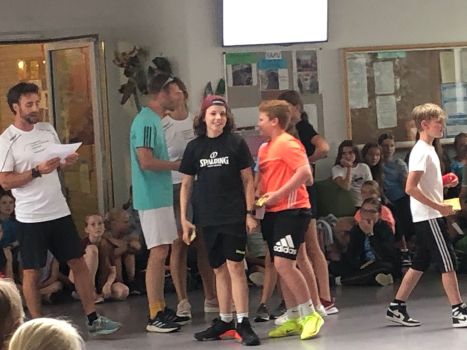 Am vorletzten Schultag fand unser Sporttag statt. Das Wetter war leider unberechenbar, immer wieder waren Regenschauer vorhergesagt. Trotzdem starteten alle Wettkämpfe wie geplant.