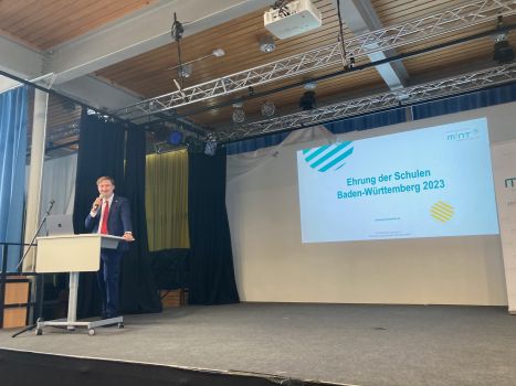 Stuttgart/Karlsruhe/Berlin, 6. Oktober 2023. 145 Schulen aus Baden-Württemberg wurden heute am Humboldt-Gymnasium Karlsruhe von Sandra Boser, Staatssekretärin im Ministerium für Kultus, Jugend und Sport Baden-Württemberg und Stefan Küpper, Geschäftsführer Politik, Bildung und Arbeitsmarkt der Unternehmer Baden-Württemberg (UBW) als „MINT-freundliche Schule" und/oder „Digitale Schule" ausgezeichnet. Die Auszeichnungen sind drei Jahre gültig. Von den 145 Schulen wurden 99 Schulen als MINT-freundliche Schule ausgezeichnet, 61 erhielten den Titel Digitale Schule. Die Ehrung der „Digitalen Schulen" steht unter der Schirmherrschaft des Bundesministers für Digitales und Verkehr Dr. Volker Wissing.