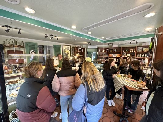Und damit war der „Pflichtteil" des Tages vorbei, doch ein paar unserer Stufe waren mit unseren Lehrern noch bei dem französischen Feinkostladen „Tartes Cézanne". Dort bekamen wir Quiches und Orangina, und die, die wollten, auch noch ein Éclair als Dessert. Die Küche durften wir uns auch noch anschauen, was sehr interessant war.
