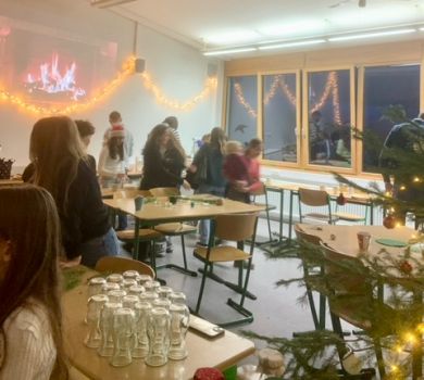 Es war den Gästen möglich, mithilfe eines QR-Codes, welcher explizit beschreibt, wo sich was befindet, sich in der großen Auswahl an Angeboten zurechtzufinden. Im oberen Stock wurde kreatives Weihnachtsbasteln, „Michas Plätzchenstube" und ein kniffliger Escape Room angeboten. Außerdem konnte man sein Glück bei einem Glücksrad mit tollen Preisen versuchen, sowie ein Erinnerungsbild in der Fotobox machen. Selbst Backmischungen konnte man anfertigen und mit nach Hause nehmen oder man forderte sein Wissen bei dem Spiel „Geoguess" heraus. Bügelperlen standen ebenfalls bereit für kleine Geschenke oder man nahm an dem angepassten Spiel „Bier-Pong" mit Süßigkeiten als Becher-Inhalt teil. In der oberen Aula verkaufte die Kursstufe 1 Waffeln und Popcorn. Zu dem organisierte sie eine Candy Bar. Im Ausgleich zu all diesen kalorienhaltigen Leckereien wurde im mittleren Stockwerk ein spaßiges Weihnachts-Workout angeboten. Zum Herunterkommen gab es ein gemütlich eingerichtetes Lesecafé, sowie das Basteln von Sternen und für den kleinen Kick: Dosenwerfen. Eine kulinarische und kreative Herausforderung war das Erstellen von Butterkekshäuschen. Passend dazu konnte man Papiertütensterne basteln. Des Weiteren gab es die Möglichkeiten Weihnachtskugeln zu bemalen und Geschenke einpacken zu lassen. Obendrein konnte man Schmuck herstellen, indem man Armbänder aus Perlen eigenständig kreieren konnte. Auch Geschenkanhänger und -karten wurden bereitgestellt. Ebenso war es möglich Kerzenbilder zu machen und sich über anwesende „Gespenst-Schrecken" zu informieren oder eine zu adoptieren. In der mittleren Aula verkaufte die Kursstufe 2 Kaffee und Kuchen, Getränke, Crêpe und Leberkäswecken. Der Nikolausmarkt war von 15-18 Uhr geöffnet und gut besucht. Er lohnt sich jedes Jahr aufs Neue und erfreut jeden. (Luisa Musser, K1)