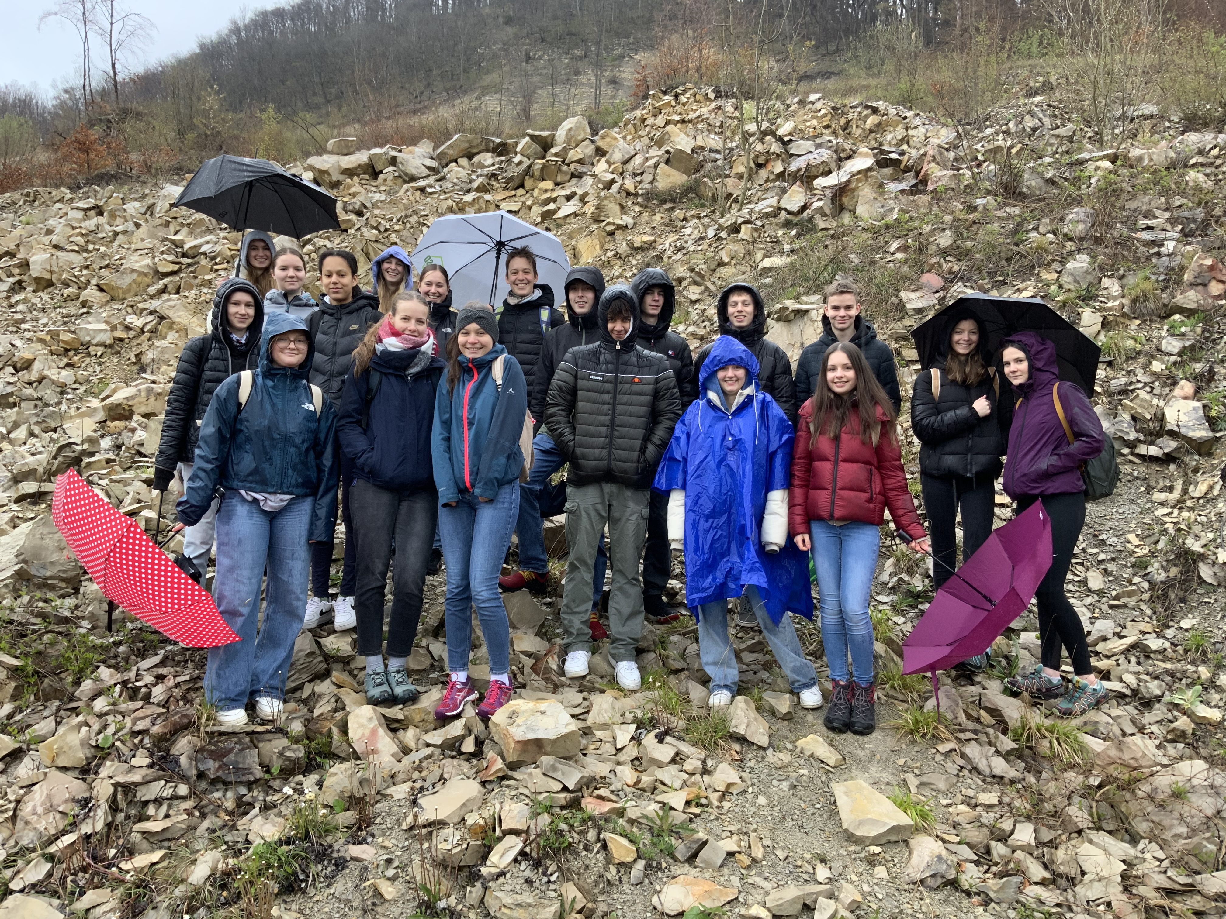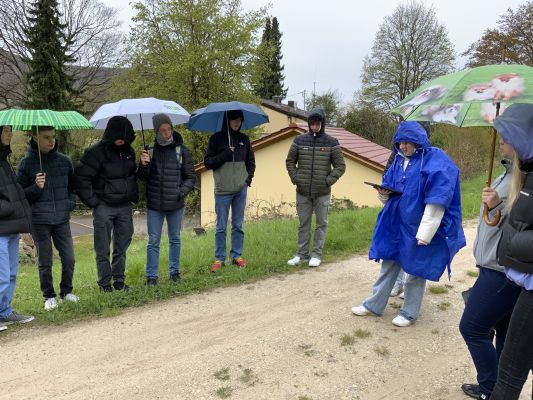 Am vergangenen Dienstag, den 25.04.23 traf sich der K1 Geographie-Leistungskurs von Herrn Schaal im Rahmen der Unterrichtseinheit "Verwundbarkeit von Räumen" um 8:00 am Öschinger Freibadparkplatz. Dieser befindet sich unterhalb der Hangrutschung aus dem Jahr 2013. Obwohl das Wetter an diesem Tag sehr regnerisch war, lief unsere Exkursion wie geplant ab. Zuerst hielt eine Schülerin ihre GFS über das Thema "Schichtstufenlandschaft". Dabei ging es um u.a. um die Frage, wieso der Raum Mössingen so gefährdet für Hangrutschungen ist. Danach ging es zu Fuß durch die Landhaussiedlung den Weg Richtung Öschinger Hangrutschung hoch, wobei man immer wieder für verschiedene Gruppenvorträge und Informationskarten anhielt. Nachdem wir die Hangrutschung aus der Nähe betrachtet hatten, ging es schon wieder zurück zum Parkplatz, von wo sich verabschiedet wurde. Insgesamt hatten wir sehr informative und lehrreiche Stunden, obwohl das Wetter sehr wechselhaft war und es zwischendurch in Strömen regnete.