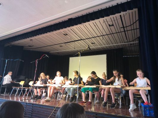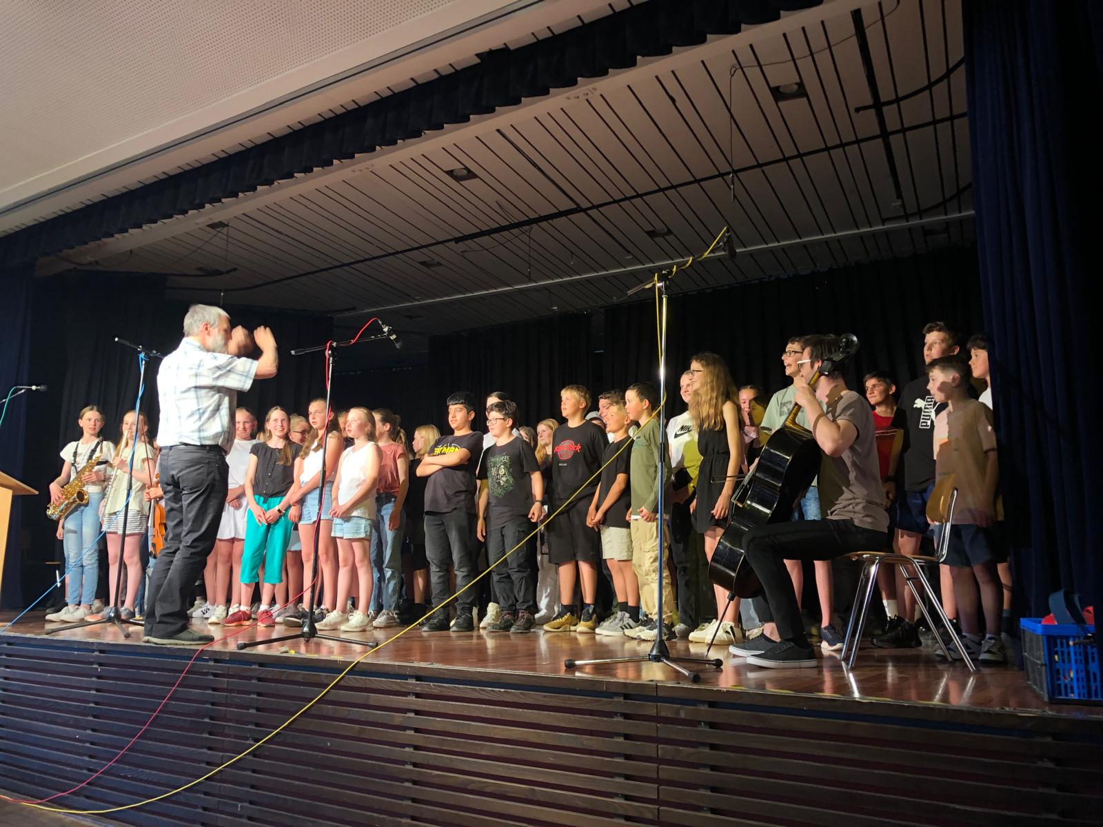 Zum Abschluss kamen alle vier Klassen auf die Bühne und sangen „Da pacem, Domine", ein schöner Abschluss mit einer wichtigen Botschaft in diesen unruhigen Zeiten. Ein gelungener Abend – danke an alle Beteiligten!