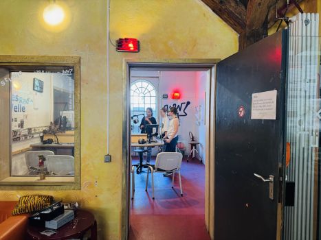 Dank der Unterstützung von Helgard Uhl (Bild, links), Radioredakteurin beim Sender, hatten wir jedoch nichts zu befürchten. Sie bediente die Technik und übernahm die Sendungsverantwortung. Dafür möchten wir ihr ganz herzlich danken!