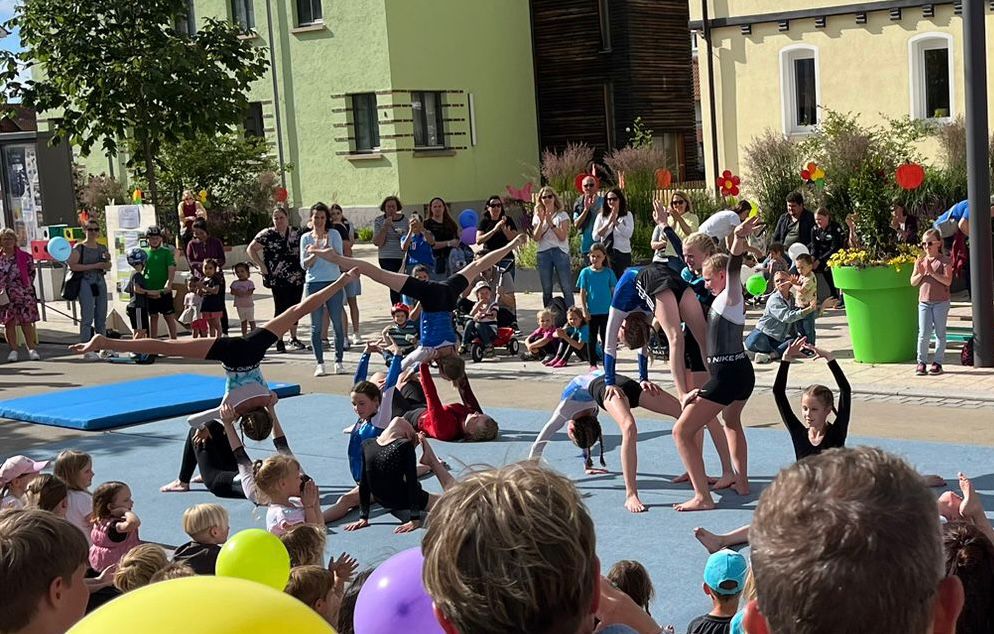 Bei strahlendem Sonnenschein führten die Mädchen ihre einstudierten Choreografien, FlickFlacks und Saltos vor und beeindruckten das Publikum mit ihrem Können, dass sogar eine Zugabe gegeben werden musste.