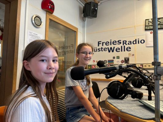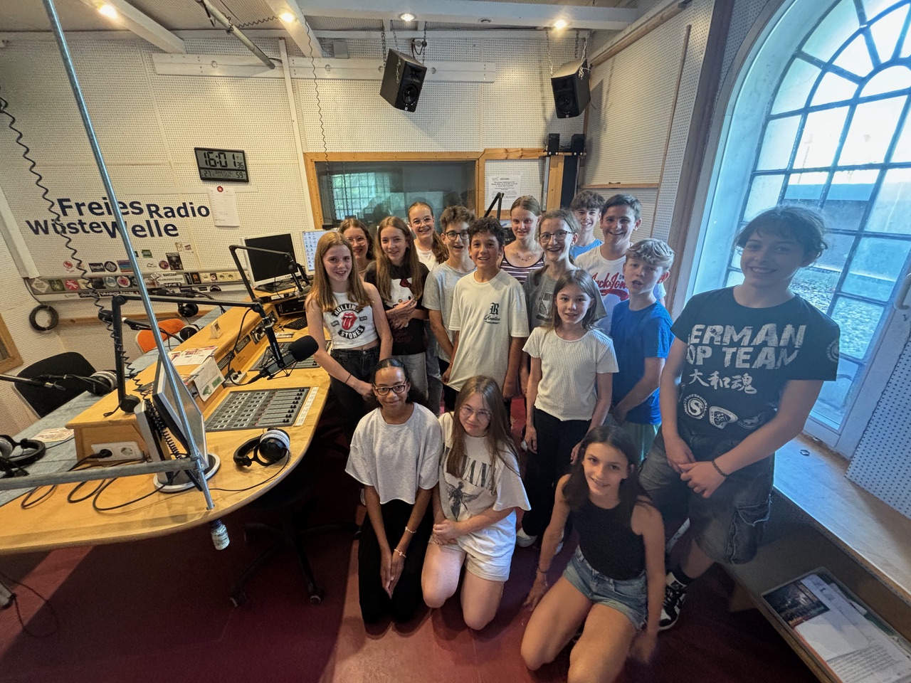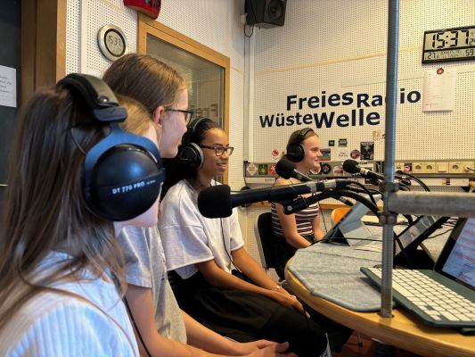 Wüste Welle und durften eine eigene Radiosendung gestalten. Nach intensiven Vorbereitungen der Beiträge und viel Arbeit haben wir die Sendung fertig gestellt. Unsere Redaktionsleitung Eni Jung und Sarah Müller erstellten eine Playlist mit unseren ausgesuchten Liedern. Als wir beim Radiosender ankamen, wurde uns erstmal etwas über den Sender und den Ablauf erzählt. Danach wurde den Schüler:innen, die etwas live einsprechen, das Tonstudio gezeigt und erklärt, wie es ablaufen wird. Nach viel Aufregung ging es auch schon los. Die Beiträge liefen hintereinander ab. Wir konnten bequem im Aufenthaltsraum vor dem Tonstudio sitzen und alle Berichte der anderen Gruppen mithören. Es war spannend und ein wunderbares Erlebnis hier dabei zu sein.