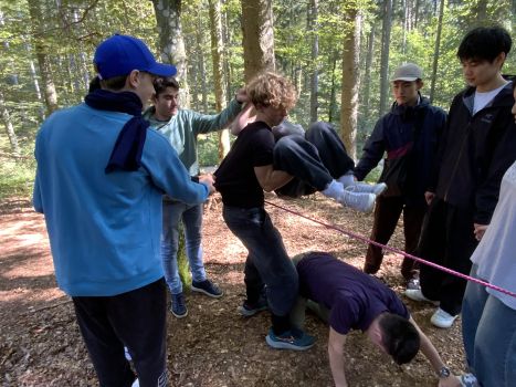 Am Samstag empfing uns nun bereits im fünften Jahr Philipp von den Albläufern. Entgegen aller Erwartungen konnten dieses Jahr bei strahlendem Sonnenschein bei verschiedenen Übungen und Gemeinschaftsaktionen rund um die Seitzhütte in Engstingen Teamfähigkeit und Problemlösestrategien gezeigt werden. Als Tagesabschluss fand sich das gesamte Team zum gemeinsamen Grillen im Internat zusammen.