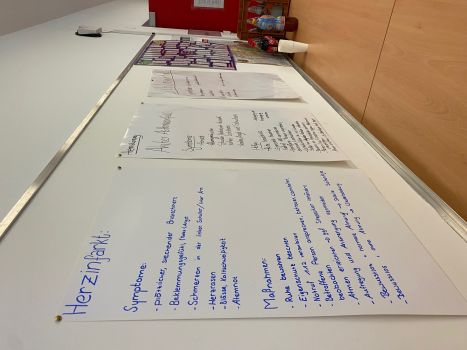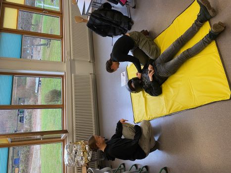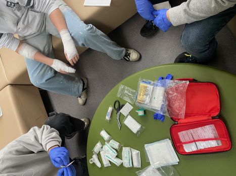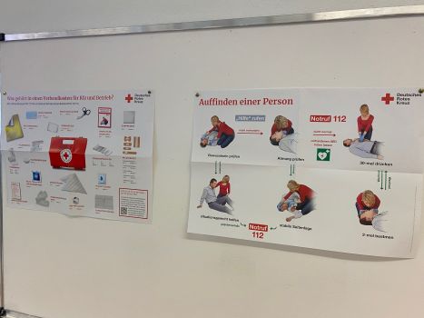 Am Samstag lernten die Schüler:innen die Grundlagen der Ersten Hilfe, wie das Anlegen von Verbänden, lebensrettende Maßnahmen und übten das Gelernte anhand praktischer Beispiele. Neben den neuen Schulsanitäter:innen waren auch einige Schüler:Innen aus dem letzten Jahr dabei, die ihre Kenntnisse auffrischten und an einigen Stellen, wie zum Beispiel bei der stabilen Seitenlage, ihre Erfahrungen einbrachten und praktische Übungen vormachten. Die praktische Auslegung des Kurses, zum Beispiel in Form von Rollenspielen zur Simulation von konkreten Notfallsituationen, machten den Samstag zu einem kurzweiligen Erlebnis und bereitet die Schüler:innen für ihren Alltag im Schulsanitätsdienst vor. Wir bedanken uns zudem beim Deutschen Roten Kreuz (Kreisverband Tübingen) für die Bereitstellung der Übungsmaterialien. (Bl)