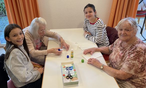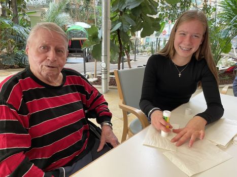 Egal, ob eine entspannte – oder auch mal ehrgeizig-sportliche – Partie „Mensch-ärgere-dich-nicht“, das gemeinsame Basteln von Weihnachtssternen, das Singen von Liedern aus der Jugendzeit der Bewohnerinnen und Bewohner oder das Bemalen von Ostereiern auf dem Programm stehen. Am Ende gehen wir die Schülerinnen mit einem fröhlichen Schmunzeln auf den Lippen zurück in den Unterricht oder die Bewohnerinnen und Bewohner winken freudig zum Abschied und rufen „bis zum nächsten Mal“.