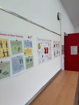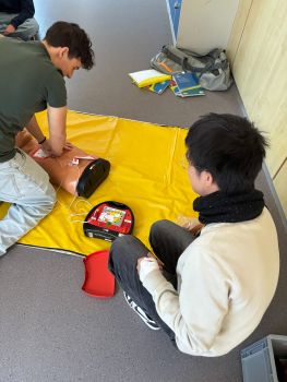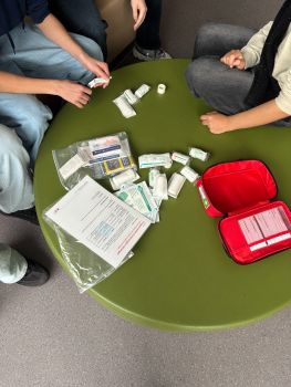 Am vergangenen Samstag fand die diesjährige Ausbildung der neuen Schulsanitäter:Innen am Firstwald-Gymnasium statt. Derzeit engagieren sich 16 Schüler:Innen aktiv im Schulsanitätsdienst und sorgen dafür, dass die Schule ein sicherer Ort ist. Dabei sind von der siebten Klasse bis zur Kursstufe 1 alle Altersstufen im Schulsanitätsdienst vertreten. Neben der Bereitschafts während des Unterrichts, den großen Pausen und der Mittagspause sind die Schüler:Innen bei Ereignissen wie zum Beispiel dem Crosslauf aktiv und kümmern sich um kleinere Verletzungen, haben ein offenes Ohr bei Redebarf aller Art oder stehen auch als Ersthelfer:Innen für den Ernstfall parat. Am Samstag lernten die Schüler:Innen die Grundlagen der Ersten Hilfe, wie das Anlegen von Verbänden, lebensrettendeMaßnahmen und übten das Gelernte anhand praktischer Beispiele. Die praktische Auslegung des Kurses, zum Beispiel in Form von Rollenspielen zur Simulation von konkreten Notfallsituationen, machten den Samstag zu einem kurzweiligen Erlebnis und bereitet die Schüler:Innen für ihren Alltag im Schulsanitätsdienst vor. Wir bedanken uns zudem beim Deutschen Roten Kreuz (Kreisverband Tübingen) für die Bereitstellung der Übungsmaterialien.