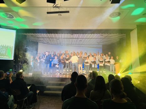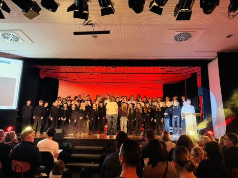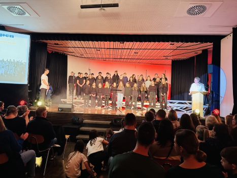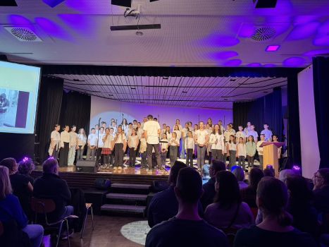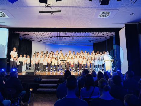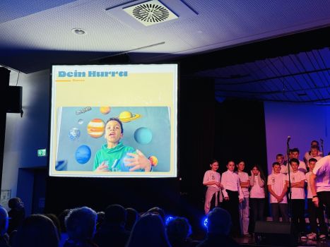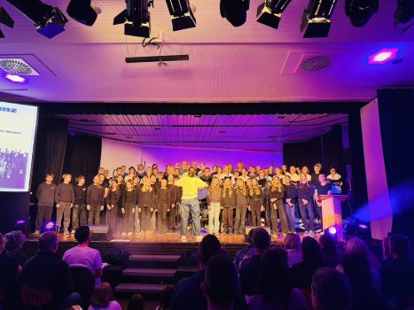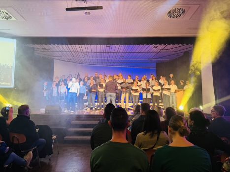 Der Auftakt des Abends hatte es in sich: Das Chorkonzert, das bereits auf der Einladung als „groß“ angekündigt wurde, wurde diesem Anspruch mehr als gerecht. Schon allein die Vielzahl und Vielfalt der Mitwirkenden beeindruckte – vom TalEntechor der Evangelischen Schulen am Firstwald über den Obergruppenchor der Jenaplanschule bis hin zum imposanten Projektchor, bestehend aus Eltern und Lehrkräften. Gemeinsam sorgten sie für ein musikalisches Erlebnis, das noch lange nachhallte.