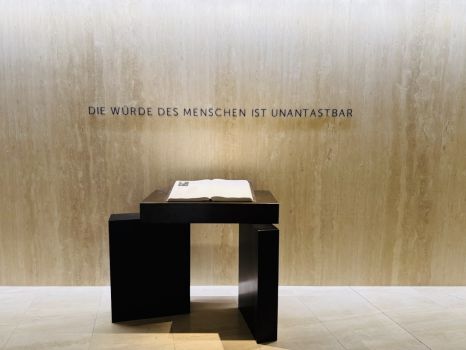 Der Tag im Zentrum der Macht war für uns alle ein besonderes Erlebnis und so manche Schülerin und so mancher Schüler träumt nun bereits von einer politischen Karriere. Gewiss eines bleibt uns eingebrannt wie die Buchstaben im Parlamentsfundament: Die Würde des Menschen ist unantastbar. (Katharina Merkens, Julian Steimle, Wm)