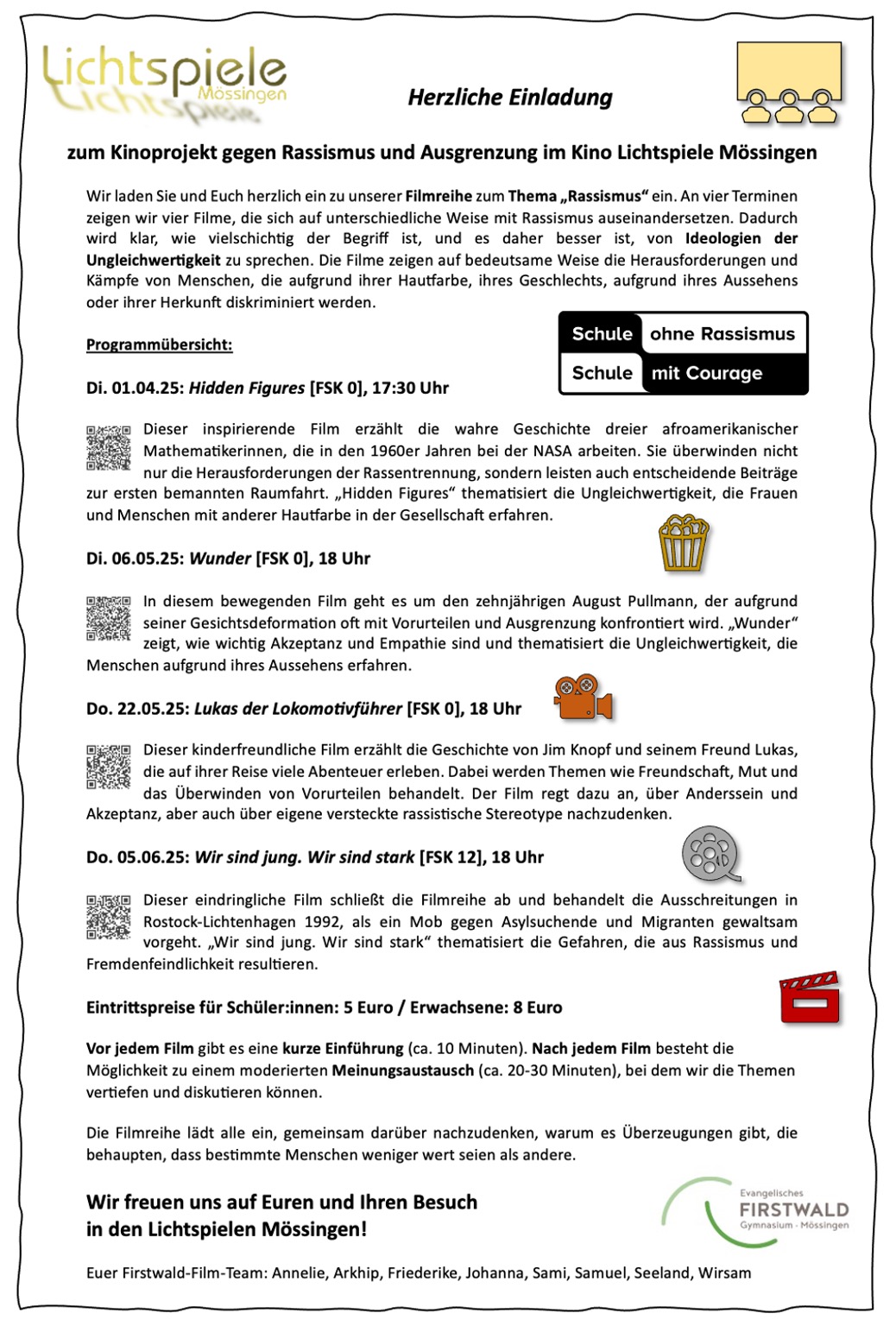 zum Kinoprojekt gegen Rassismus und Ausgrenzung im Kino Lichtspiele Mössingen