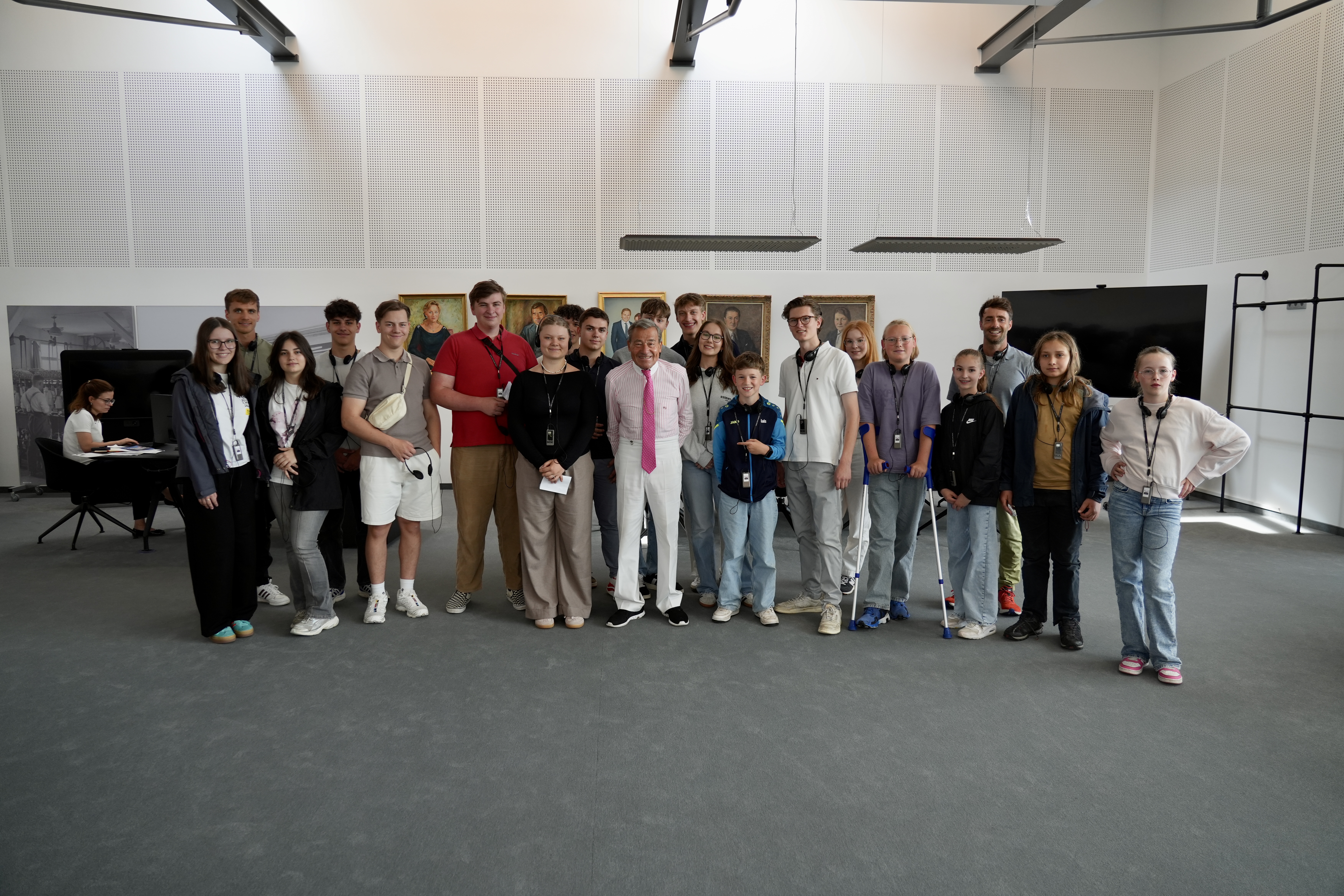Ein besonderes Highlight unseres Besuchs war das persönliche Gespräch mit Frau Bonita Grupp und Herrn Wolfgang Grupp Junior. Gemeinsam sprachen wir über unsere Ideen, die Bedeutung fairer Schulkleidung und die spannenden Möglichkeiten einer zukünftigen Zusammenarbeit.