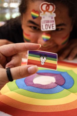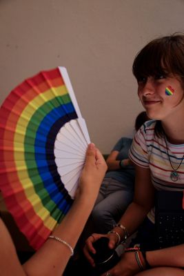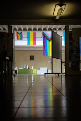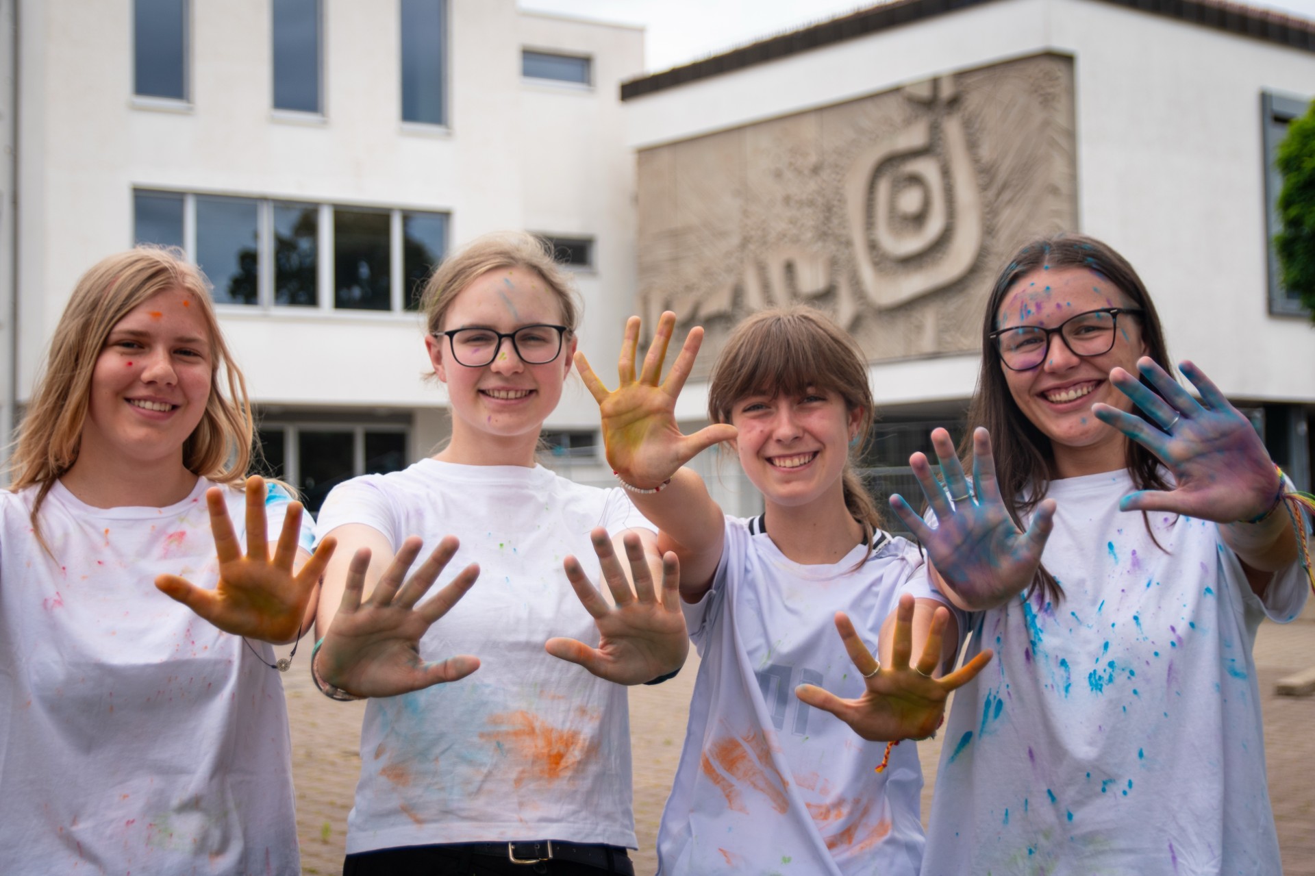 Ein besonderer Dank geht an unserer Gäst:innen Flynn Take, Lea Jane Aphrodite, Alpine Ski und Darleenqueen, mit denen unsere Schüler:innen ins Gespräch kommen konnten. Als besonderen Abschluss ließen wir noch einen Holi-Regenbogen über dem Schulhof leuchten.