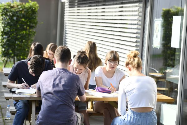 Alle Schüler:innen haben täglich zwei volle Stunden Mittagspause und damit die Gelegenheit, in dieser Zeit zu Mittag zu essen, Hausaufgaben zu machen (betreut durch Fachlehrer:innen und Schüler:innen), eine LeA zu besuchen oder aber sich "nur" zu erholen.